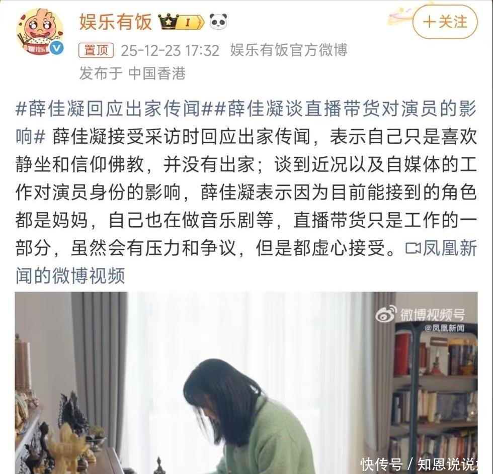 但这不过是真假掺半的说法罢了,最近薛佳凝自己也出来澄清了。她确实已经修行了好多年,不过没真正去当尼姑。她是因为喜欢才信了佛教,选择静心修炼,而且是在自己家里,以代发的方式修行。