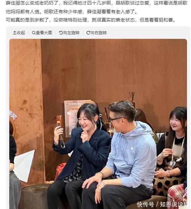 看到活动照,不少网友第一反应是这人老得都快认不出了。随后,批评声四起,不仅针对薛佳凝日渐老去的容颜,还对她活动中的装扮颇有微词。