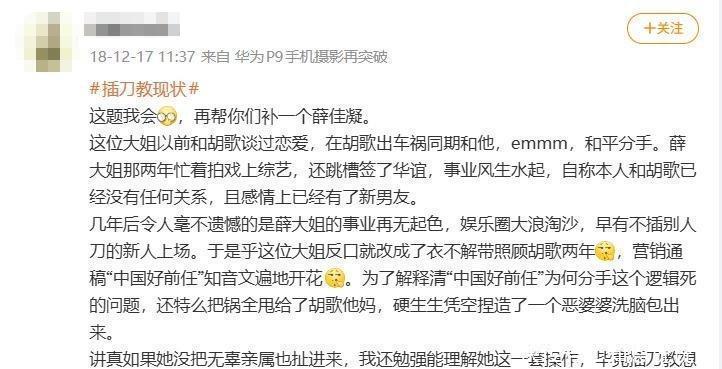 但网络这东西记性可好啦,就算薛佳凝这辈子都不再说起“插刀教”这事儿,还是会有网友记住她这段不光彩的过往,到时候自然会有人替她再翻出来。薛佳凝还有件不太光彩的事儿,就是老拿和胡歌的那段过往说事儿,不是现实里纠缠,而是总炒作以前的感情。