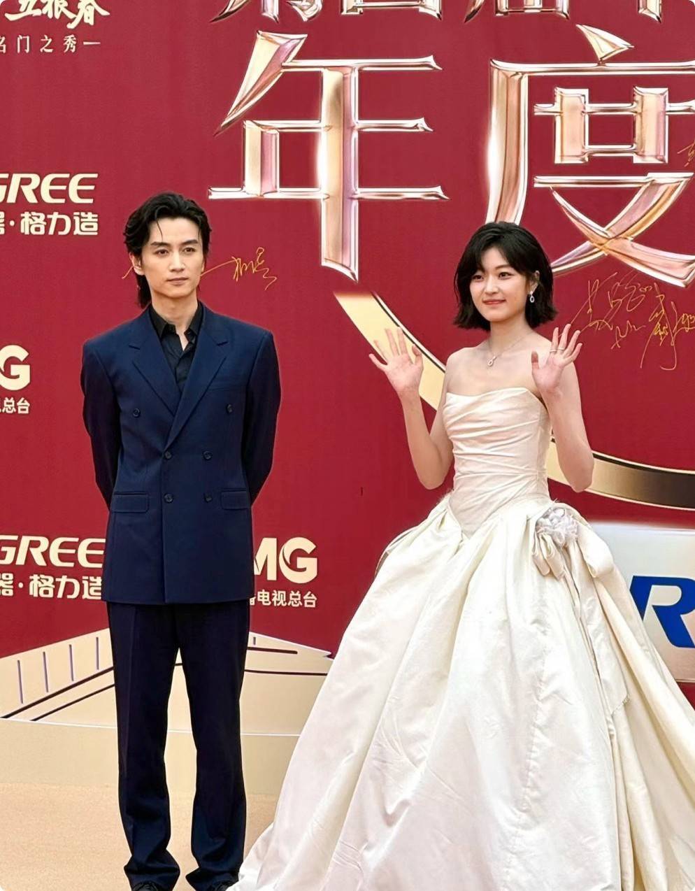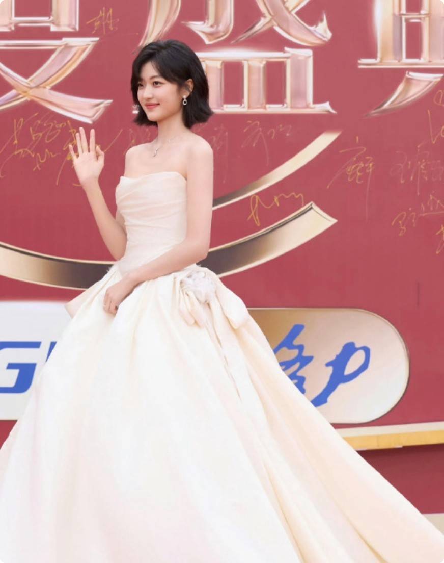与陈晓搭档走红毯的孙千,一袭白色缎面抹胸礼裙走的是清甜少女路线。简约的抹胸设计露出她精致的锁骨,白皙的皮肤与哑光白缎相衬,尽显青春感,利落的齐肩短发梳得一丝不苟,增添了几分都市少女的干练,与身旁沉稳的陈晓同框,还透着几分可爱的反差萌。孙千青涩的状态也十分真实,紧张到不知手往哪放的模样,反而让她多了几分邻家女孩的可爱,灵动的眼神依旧极具感染力。