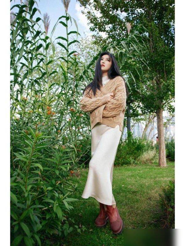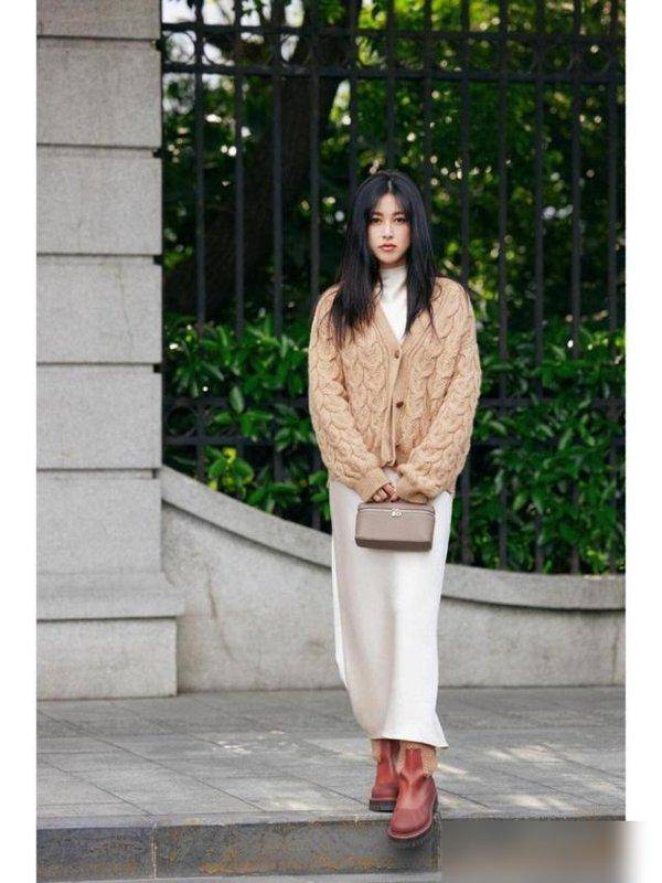 其实朱珠的“厉害”不止这一套,她的其他搭配也都是“懒人友好型”:复古外套配牛仔裤,外套版型刚好,不松垮也不贴身,藏住小肚子和拜拜肉,内搭件简单的黑打底衫,下装选条质感好的牛仔裤(重点是要选“硬挺”的面料,别买软塌塌的),再配双浅色系休闲鞋,二十岁穿是青春校园剧,三十岁穿是都市丽人,四十岁穿是洒脱辣妈,跨年龄的“兼容性”绝了;还有毛衣开衫搭白裙+靴子,开衫的花纹温柔得像秋天的风,扣子设计穿脱方便,内搭白裙到脚踝,藏住腿上的小瑕疵,靴子刚好护住脚踝,风大也不怕冷,走在街上像从韩剧里走出来的女主角,回头率超高!