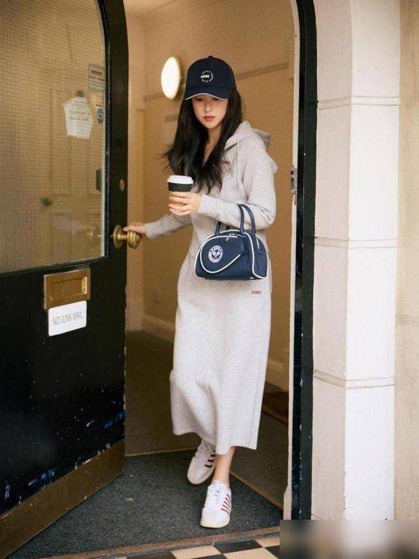 秋天的氛围感,真的离不了卫衣,但普通卫衣搭运动裤总少点“精致感”,朱珠偏不按常理出牌:选件短款灰色卫衣,刚好盖过腰头,黄皮穿也显白,连帽设计遇上下毛毛雨,直接拉起来当帽子,省得带伞麻烦;下装配同色系带字母的直筒半裙,长度刚好到脚踝,里面套加绒秋裤都看不出来,直筒版型带点松量,腿粗的姐妹能藏住肉,腿细的姐妹能显腿直,最绝的是——卫衣的休闲感和半裙的优雅感撞在一起,居然像奶茶加珍珠,甜而不腻!约会时穿,走路带风都温柔;通勤穿,赶地铁跑两步也不慌,同事见了都得问:“你这一身在哪买的?看着状态也太好了吧?”